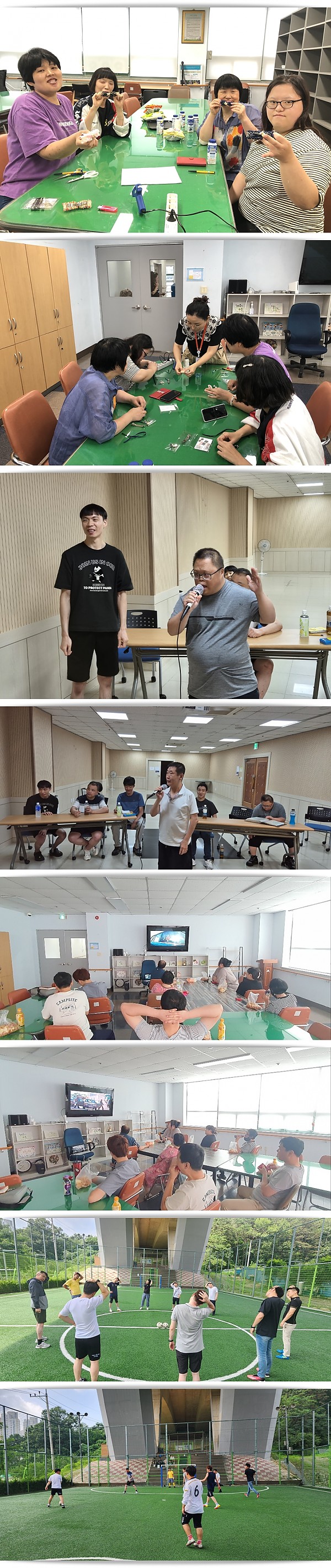 7월 동아리활동 페이지 정보 작성자 관리자 작성일24-08-02 17:20 조회2,460회 댓글0건 이전글 다음글 목록 본문 이번 2회차 이용인 동아리활동(노래연습, 풋살, 공예, 영화관람)에서 즐거운 시간을 보냈습니다. 이전글 다음글 목록