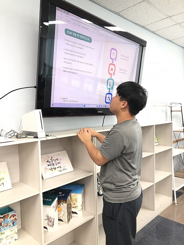 2024년 7월 직업준비프로그램 페이지 정보 작성자 관리자 작성일24-08-13 10:00 조회2,429회 댓글0건 이전글 다음글 목록 본문 직업준비프로그램으로 '손님이 왔을 때 이렇게 합니다'를 학습해 봤습니다. 이전글 다음글 목록