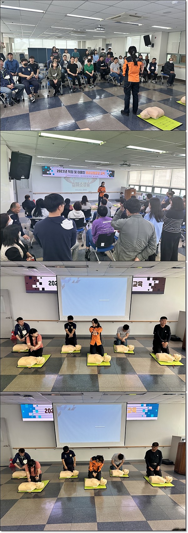 응급상황훈련 교육 페이지 정보 작성자 관리자 작성일23-06-30 14:59 조회3,470회 댓글0건 이전글 다음글 목록 본문 응급상황훈련으로 응급상황 시 대처 방법(심폐소생술)을 배우고 있습니다 ^^ 이전글 다음글 목록