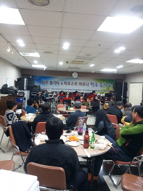 통기타소나무&빅포스트하모니 작은 음악회 개최 페이지 정보 작성자 정관용 작성일14-02-14 10:42 조회2,303회 댓글0건 이전글 다음글 목록 본문 통기타 소나무 동아리와 북광주우체국 직원분으로 구성된 빅포스트하모니팀, 그리고 풍암동색소폰앙상블이 함께하는 작은음악회가 2월 13일(목) 늦은 7시에 각화문화의집 문화관람실에서 열렸답니다. 작은 무대였지만 즐겁고 행복한 시간이 아니었나 싶네요~ 공연준비를 위해 열심히 연습하신 통기타 회원 여러분에게 박수갈채를 다시한번 보냅니다.^^ 이전글 다음글 목록