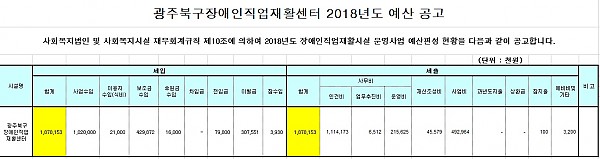 2018 광주북구장애인직업재활센터 세입세출(예산) 공고