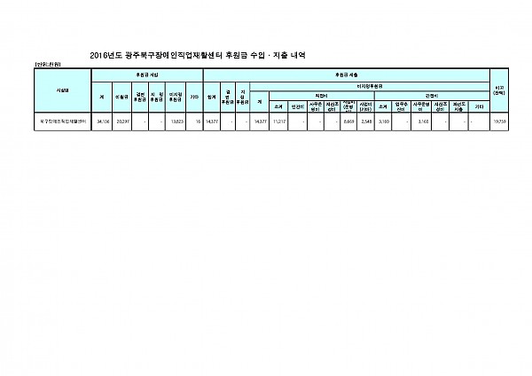 2016년 광주북구장애인직업재활센터 후원금 수입 및 사용내역 페이지 정보 작성자 배지연 작성일17-05-10 09:38 조회13,880회 댓글0건 이전글 다음글 목록 본문 2016년 광주북구장애인직업재활센터 후원금 수입 및 사용내역을 다음과 같이 공고 합니다. 이전글 다음글 목록
