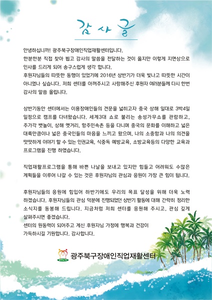 꿈과 희망의 발걸음! 광주북구장애인직업재활센터에서 여러분과 함께합니다.