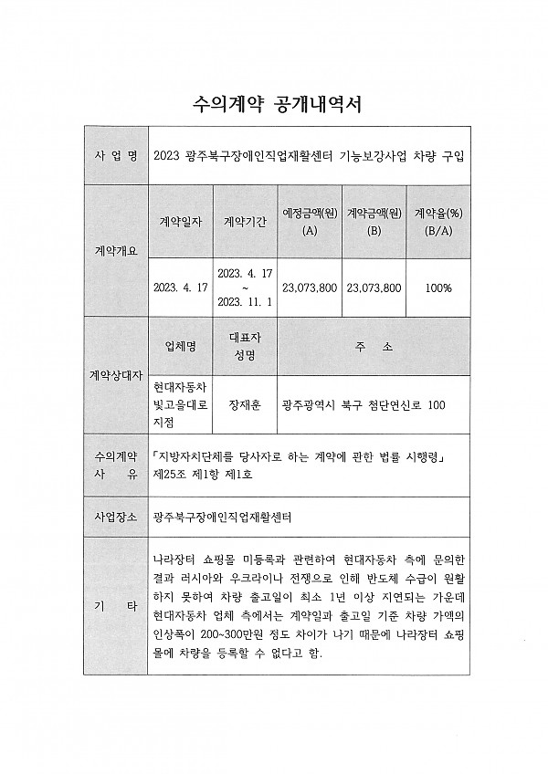 2023 기능보강사업 장비보강 수의계약 공개내역 페이지 정보 작성자 관리자 작성일24-05-10 10:13 조회11,317회 댓글0건 이전글 다음글 목록 본문 2023 기능보강사업 장비보강 수의계약 공개내역 이전글 다음글 목록
