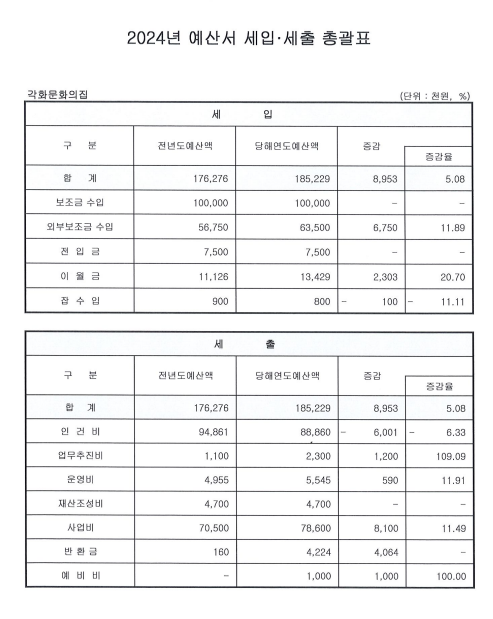 2. 공고사항 : 2024 각화문화의집 세입·세출 예산서